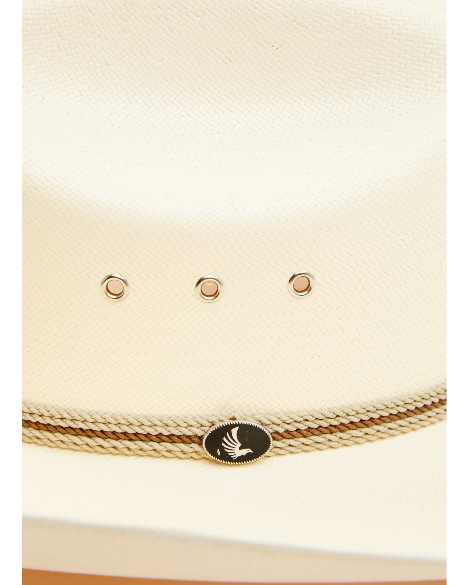 - Tan and brown roped hat band with oval hat pin