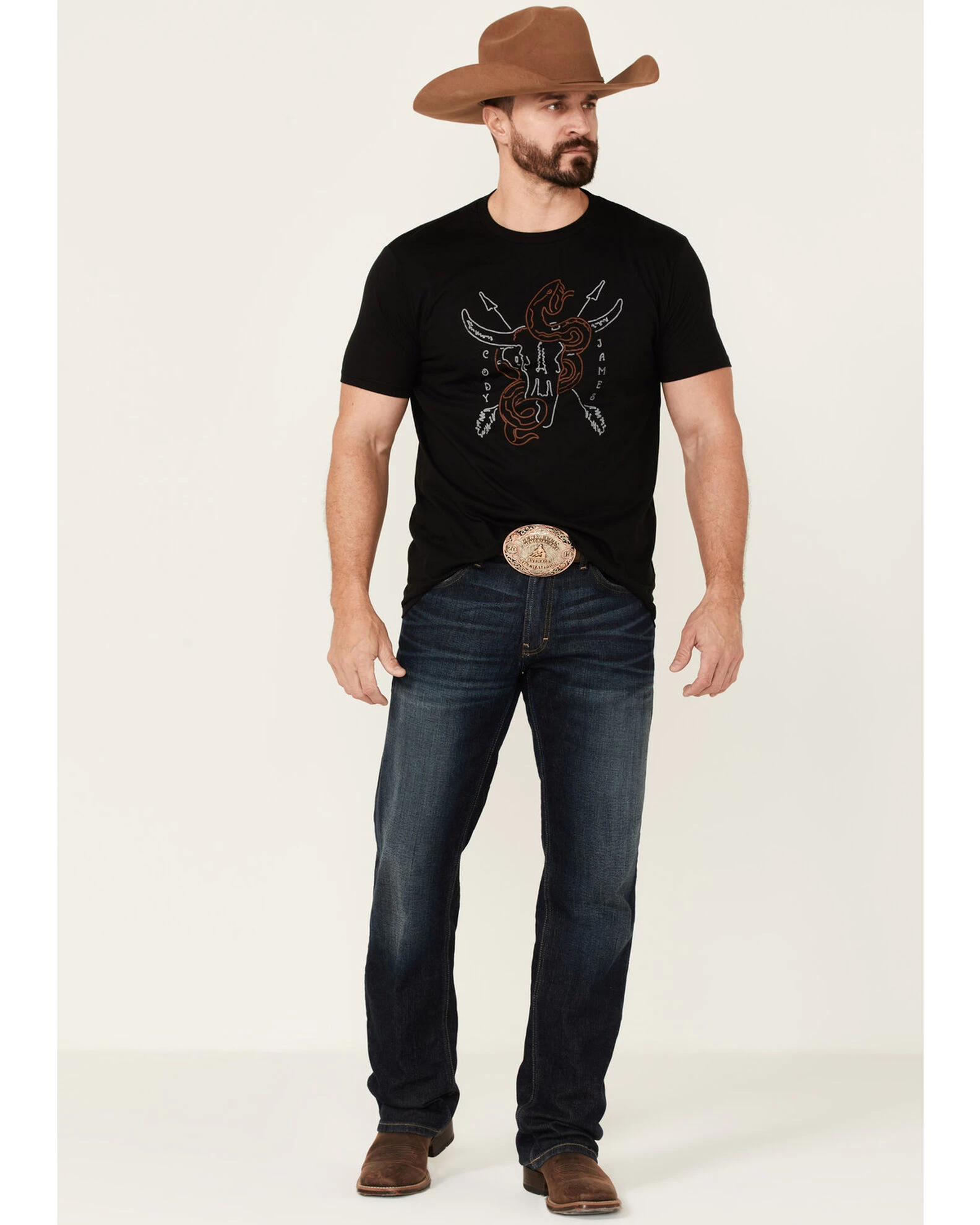 - “Cody James” with cross arrows, steerhead skull, and wrapped around snake graphic on front