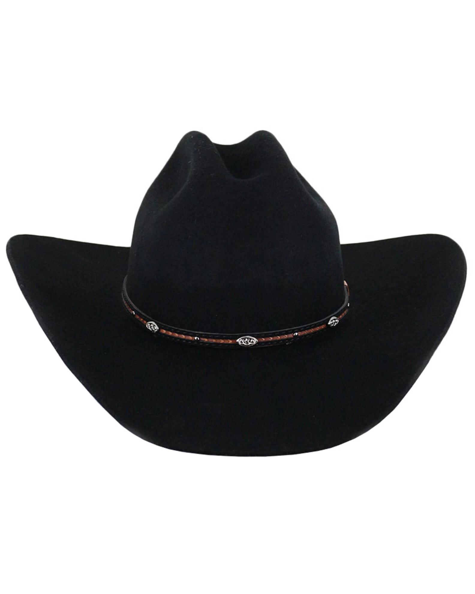 - Decorative leather hatband with silver conchos