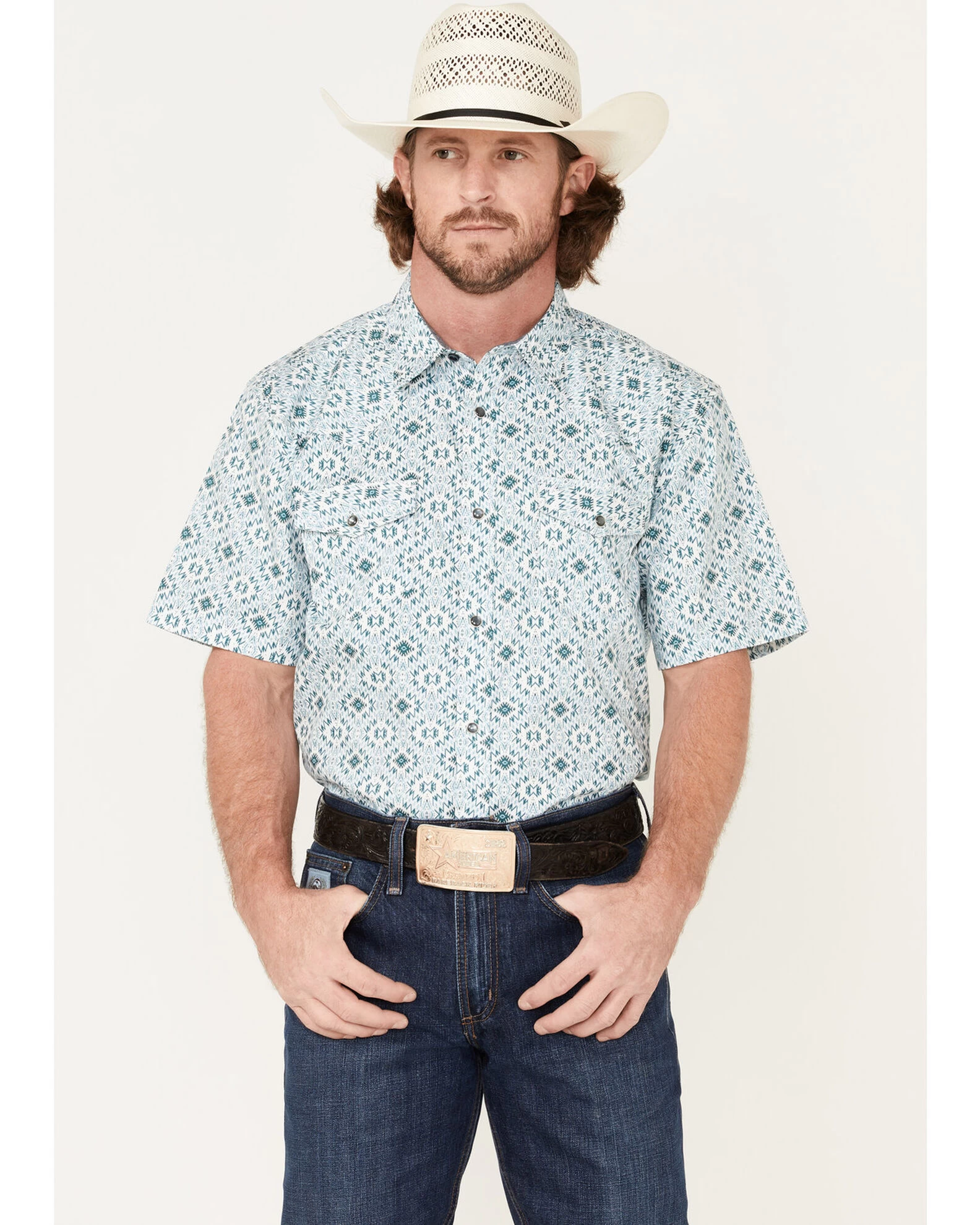 Cody James Men’s Wagon Southwestern Print Short Sleeve Western Snap Shirt